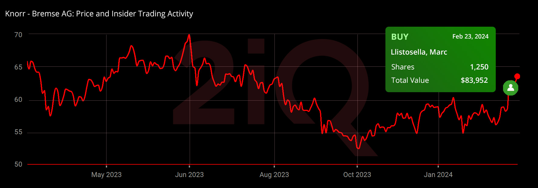 On February 23, Knorr-Bremse's CEO Marc Llistosella increased his holdings by 1,250 common shares of KBX at a per-share price of 62.08 EUR. This transaction amounted to an investment exceeding $83,952. With a keen eye on future prospects, this move signals confidence in Knorr-Bremse's trajectory.